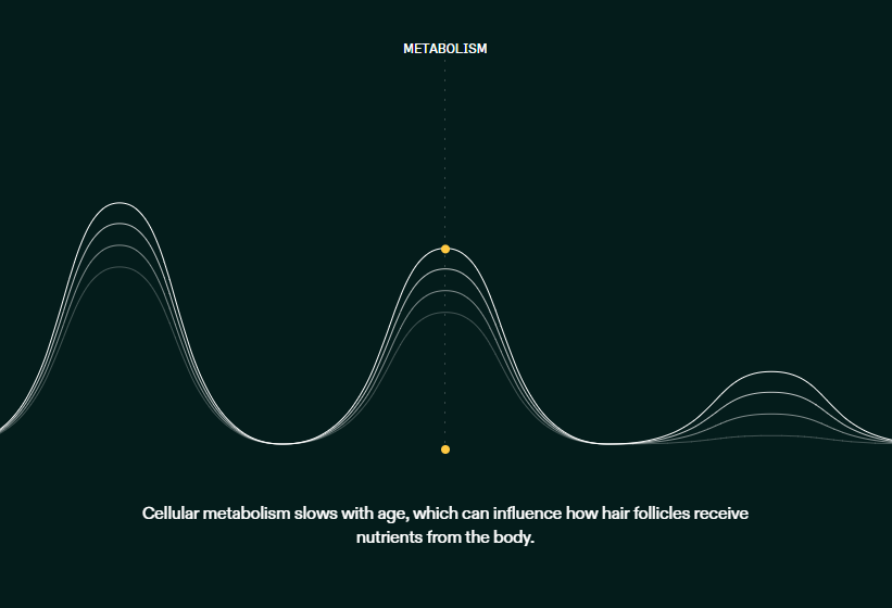 Our proprietary blend pinpoints internal causes of hair thinning and shedding to promote ahealthy hair growth cycle—because hair and health grow together.
